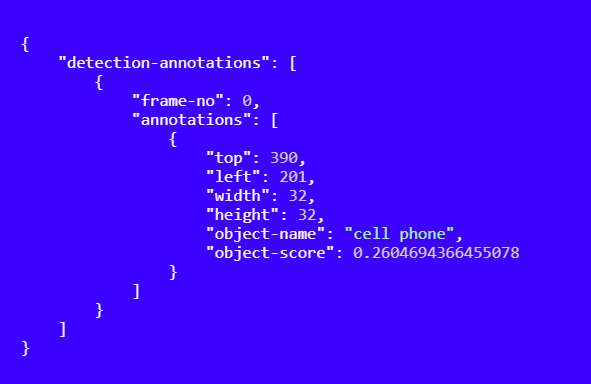 The result of this function is metadata with a list of found objects and the probabilities of their detection.