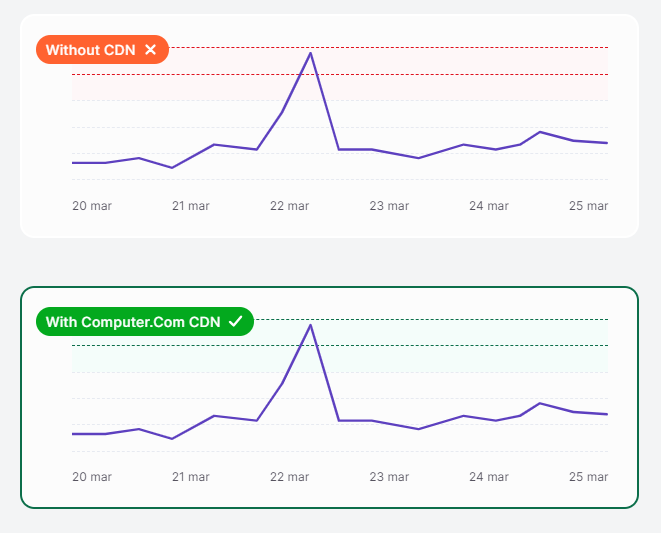 Computer.Com CDN has more than 110 Tbps of global network capacity to protect your game distribution process from any disruptions.