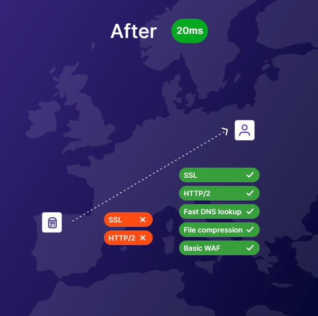 Our caching servers are located closely to your users so all their requests will be served faster. The shorter distance means we can deliver more data per second to minimize the page load time.