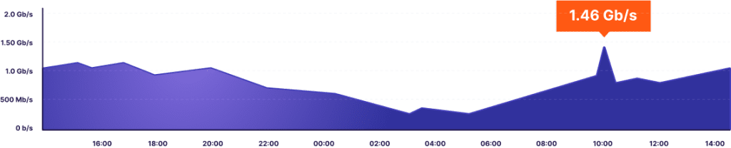 This was the case when the previously announced PS5 online sale caused a 30% burst in traffic for the online retailer. At the peak of that morning sale, we had 1.46 Gbps, when the normal traffic range during the day was about 0.9-1.1 Gbps.